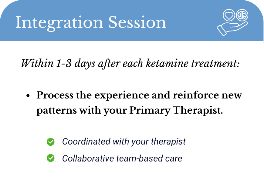 With your permission, we work with your Primary Therapist to support deeper integration, helping each session create lasting change.